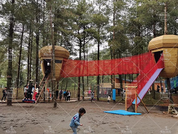 有趣樹屋項目通過攀爬梯子,你可以進入樹屋,尤其是孩子們覺得有必要從上面往下看,感覺自己是空中較高的,可以逃過成人的直接接觸,使他們的自信心更加的堅定。在配置些滑梯、秋千、繩網(wǎng)、滑竿等有趣的項目使的樹屋的樂趣倍增。
