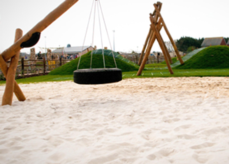 • 在類似木質(zhì)游樂(lè)器材、滑梯、木質(zhì)海盜船等爬高并下降的設(shè)備中,必須進(jìn)行抗沖擊地面。